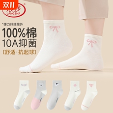 浪莎袜子女款秋季纯棉防臭吸汗中筒2025爆款秋冬全棉无骨长袜抗菌
