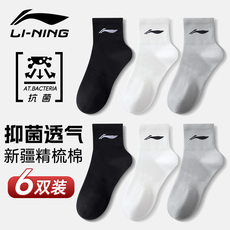 李宁袜子男款运动短袜女棉袜夏季薄款青少年学生抗菌防臭中筒白色