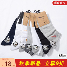 宝来捷男士袜子黑色白色船袜中筒袜子棉袜