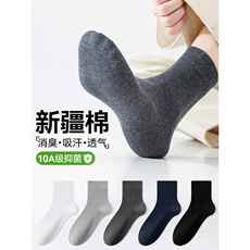 10A抑菌袜子男款春秋纯棉中筒袜吸汗防臭白色运动袜秋冬男士棉袜