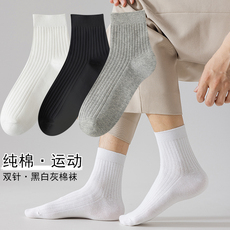 VALINGNSL纯棉抗菌A类运动袜子男款白色全棉四季防臭透气中筒棉袜