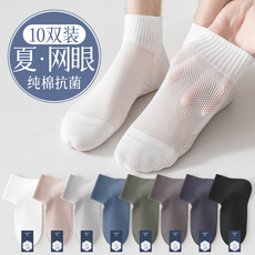 日本品质不臭脚袜子男短袜春夏网眼棉袜精梳棉黑白色抗菌防臭透气