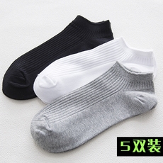 5双男袜子纯棉男士船袜纯黑白色短袜夏薄吸汗运动袜低帮短筒棉袜