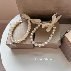珍珠水钻公主风蝴蝶结宠物项圈狗狗小型犬泰迪猫咪脖圈项链装饰品