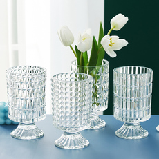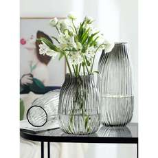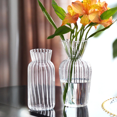 北欧玻璃花瓶透明水培条纹花瓶小清新干花鲜花客厅装饰插花瓶摆件