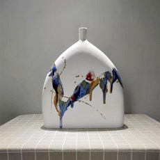 简约田园色釉扁平陶瓷花瓶插花家居装饰电视柜客厅桌面摆件工艺品