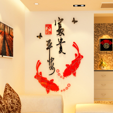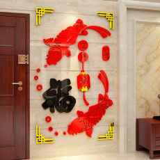 亚克力电视福字装饰中国风贴纸客厅立体餐厅新年鱼墙贴画背景墙3d
