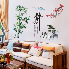 梅兰竹菊贴纸客厅电视背景墙装饰墙纸3d立体自粘U防水防潮墙贴画