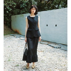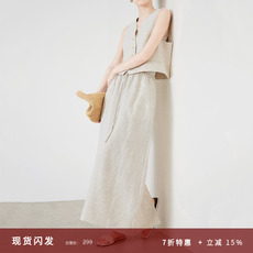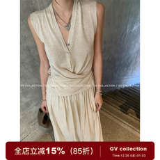 GV大白哥 高智日常 亚麻马甲收腰背心褶皱垂坠感直筒半裙套装女