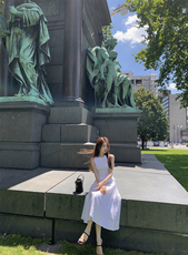 DeesseSicile 浪漫少女恋夏度假风白色100亚麻吊带半身裙套装女