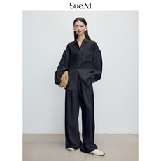 NON RESTRAIN法式压褶收腰长袖衬衫上衣女宽松显瘦亚麻半身裙套装