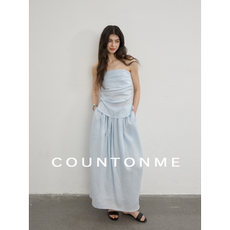 COUNTONME 法式浪漫全亚麻褶皱设计抹胸上衣女花苞裙半身裙套装