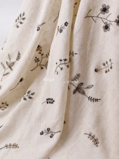 垂感亲肤 米色重工植物花朵刺绣纯亚麻面料衬衣连衣裙套装布料DIY