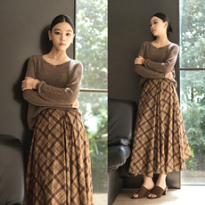 复古老钱风亚麻针织衫格纹半身裙两件套女时尚套装2025秋季新款