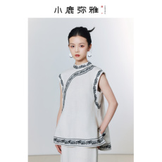 AIMUSA 25夏季老钱风白色亚麻马甲短裤套装女薄款棉麻马夹半身裙