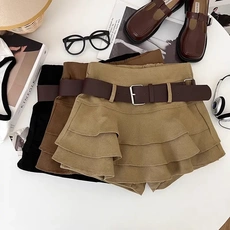 2025秋冬新款毛呢百褶半身裙女配腰带韩版简约通勤百搭短裙子裙裤