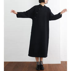 复古无尘太空棉新中式连衣裙 小鱼秋冬季原创宽松显瘦黑色长款裙