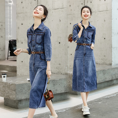 法式牛仔连衣裙女春夏装新款复古休闲小个子裙子显瘦气质衬衫长裙