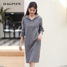 风笛休闲连衣裙女2024年秋冬季新款显瘦针织连帽卫衣裙内搭长裙子