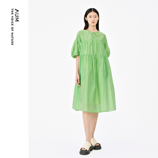 【亚麻】Eland衣恋连衣裙女休闲圆领泡泡袖透气裙子