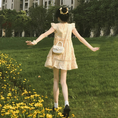 紫涵轻薄半透吊带连衣裙女夏季新款休闲打揽高腰显瘦A字中长裙子