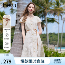 betu百图法式温柔风刺绣V领连衣裙2026年夏季新款短袖气质裙子