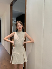 太平鸟发光小白裙2026夏新款简约通勤连衣裙无袖白色法式长裙子女