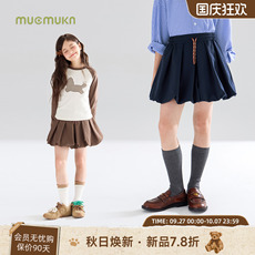 MUCMUKN童装 秋装新款百搭半裙洋气学院风花苞短裙腰裙女童裙子