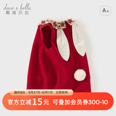 【商场同款】戴维贝拉女童连衣裙2025秋装公主裙儿童新年红色裙子