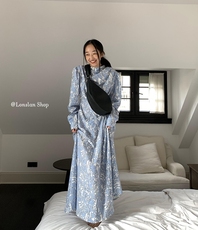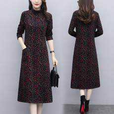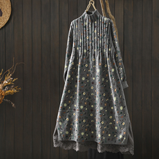 渔牌女装秋装女2023年新款立领印花碎花长款连衣裙子FGFD0036