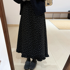 DM100大码百分百女装微胖mm冬季甜美百搭碎花丝绒伞摆长款半身裙