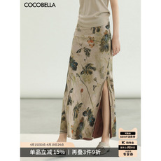 预售COCOBELLA[浮金碎影]新中式烫金网纱半身裙女开叉长裙HS0028