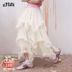 千朔不规则拼接蕾丝绝美巨好看春白色仙女a字蛋糕网纱半身裙长裙