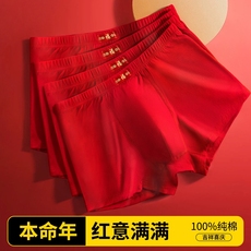 红豆男士大红色内裤本命年纯棉裆属马结婚礼物四角平角短裤头1条