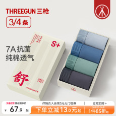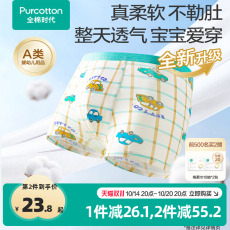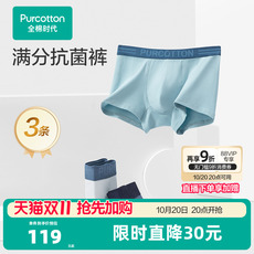 全棉时代男士抗菌内裤纯棉透气裤头新款男生3条装平角裤短裤