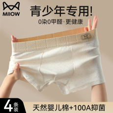 猫人青少年纯棉内裤男生发育期初高中学生平角短裤大童胖童四角裤