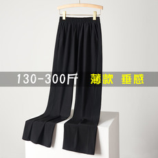 300斤夏季薄款冰丝速干阔腿裤女弹力垂感200胖MM高腰加肥大码裤子