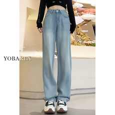 冰丝牛仔裤女士新款高腰夏季薄款弹力宽松中老年妈妈大码直筒长裤