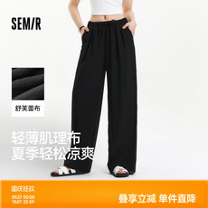 森马休闲裤女凉感防晒垂感长裤纯色2025夏新款黑色速干阔腿裤慵懒