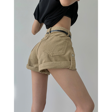 千禧牛仔短裤女2025夏季新款超低腰露脐弹力紧身显瘦包臀卷边热裤