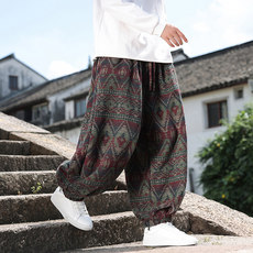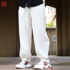 25A12C8秋季棉麻百搭休闲裤子新中式宽松复古风哈伦裤束脚灯笼裤