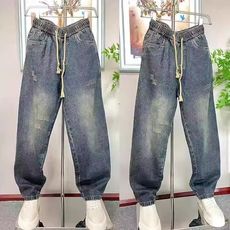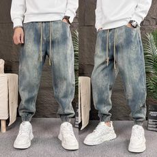 100250斤 牛仔裤男士潮牌宽松束脚哈伦裤新款大码休闲长裤子男
