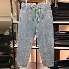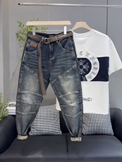 2025秋季新款男士休闲拼接牛仔裤时尚青年宽松百搭束脚哈伦裤痞帅