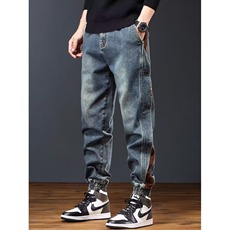 潮牌牛仔裤男士春季新款长裤宽松束脚哈伦裤时尚百搭运动裤休闲裤