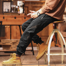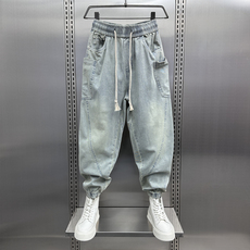 秋季复古潮牌工装牛仔裤男2025新款休闲宽松哈伦裤痞帅抽绳小脚裤