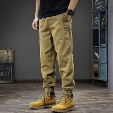 卡其色工装裤子男潮流宽松束脚哈伦裤秋季纯棉痞帅美式小脚休闲裤