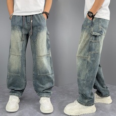 美式复古宽松直筒牛仔裤男潮牌痞帅哈伦裤潮流百搭抽绳休闲长裤子
