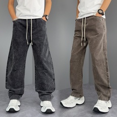 2023秋冬款灯芯绒休闲裤男潮宽松哈伦裤百搭加厚条绒直筒老爹裤子