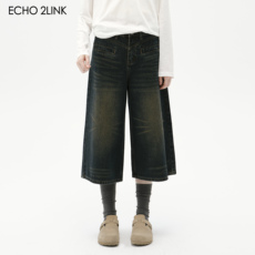 2LINKS |复古水洗 超阔裤腿 随意慵懒褂 七分牛仔裤