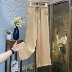 季妈妈夏天丝裤子款女装薄款舒适百搭九分阔PCW裤腿女士休闲 新松